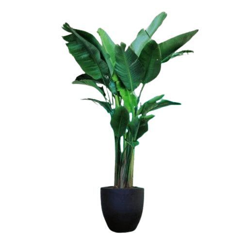- Appearance: Bird of Paradise plant features large, paddle-shaped leaves arranged in a fan-like pattern atop long, sturdy stems. The plant produces stunning orange and blue bird-shaped flowers with protruding beak-like structures, resembling the plumage of a bird in flight. These flowers emerge from boat-shaped bracts and are held above the foliage on tall stalks.