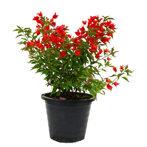 Bougainvillea Tomato Red is outdoor evergreen flowering vine shrub. Also Known as Paper Flower,Lesser Bougainvillea which can grow better in Full sun and reflected heat to partial shade. it some protection from salty coastal winds * Sunlight is the most important factor that helps this plant grow, Keep soil moist but not wet. Flowering tends to be more prolific when the plant is slightly water stressed. Moderately drought tolerant for short periods only. Does not accept over irrigation or waterlogging.