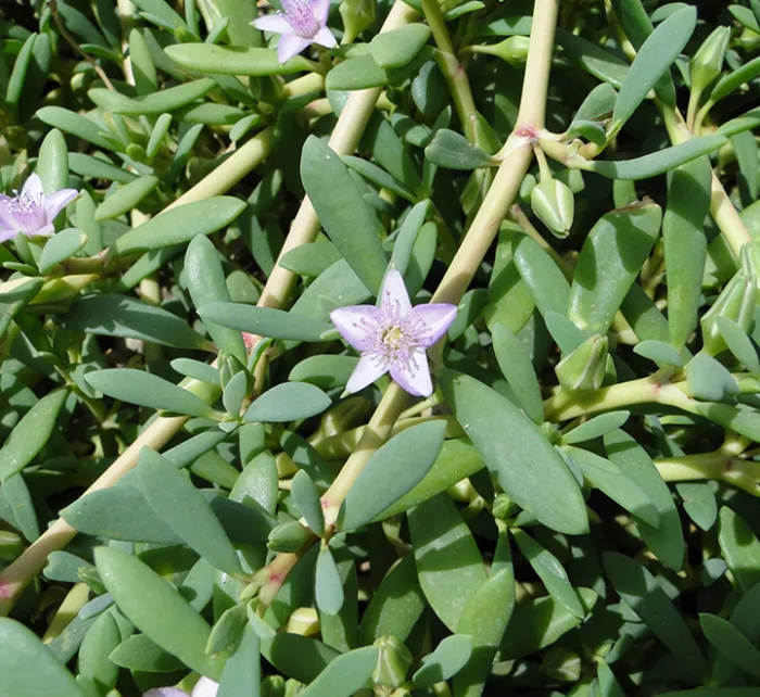 - Adaptations to Coastal Environments: Sesuvium portulacastrum is well adapted to survive in harsh coastal environments characterized by high levels of salt, sand, and exposure to saltwater spray. Its succulent leaves store water, allowing the plant to withstand drought conditions and high salinity.